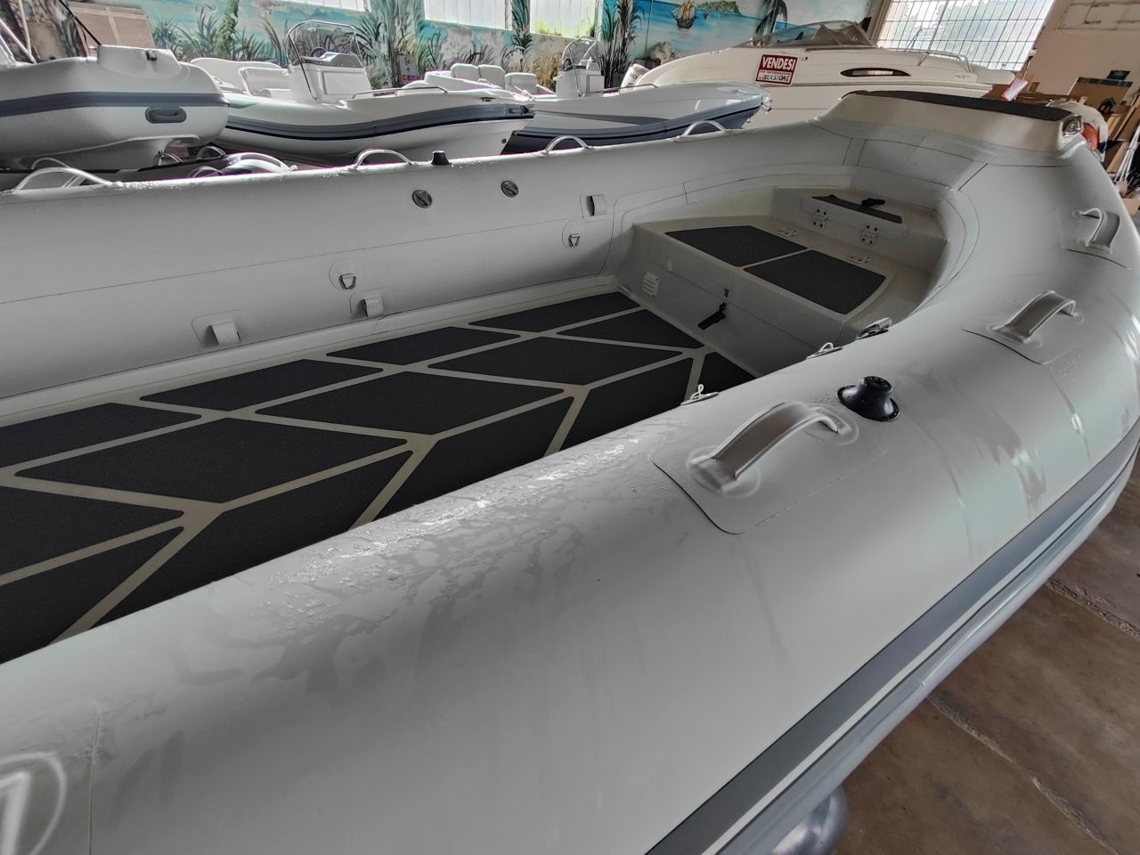 Gommone nuovo con piccole imperfezioni, mai usato, solo esposto in fiere.
